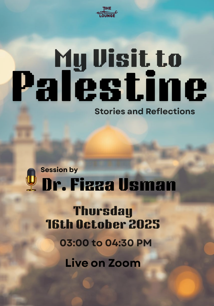 Join us for an inspiring online session with Dr. Fizza Usman as she shares heartfelt experiences, lessons, and reflections from her visit to Palestine.